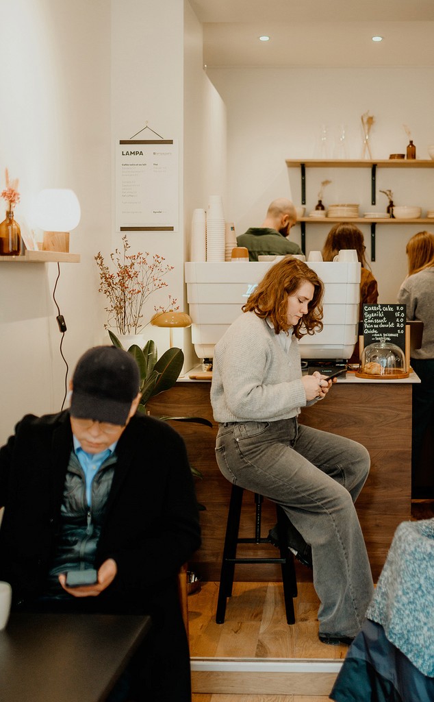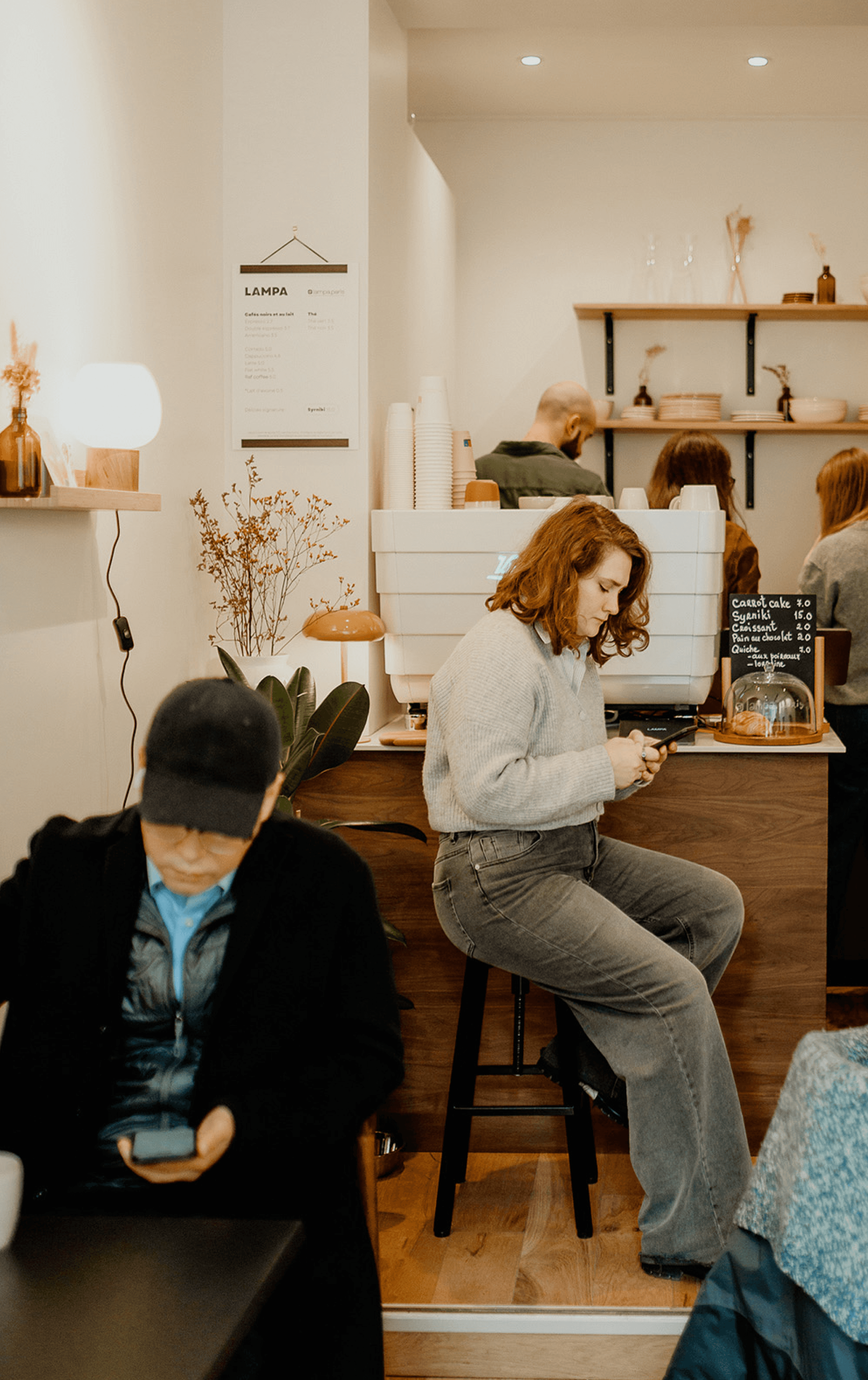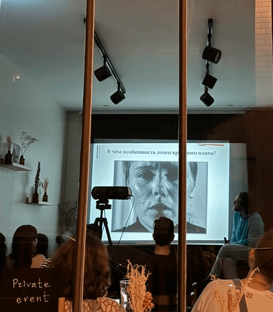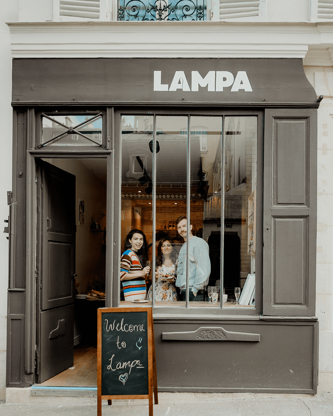 Lampa — an edutainment laboratory and coffee shop in Paris. The space hosts film screenings, exhibitions, lectures, and intellectual games — alongside coffee